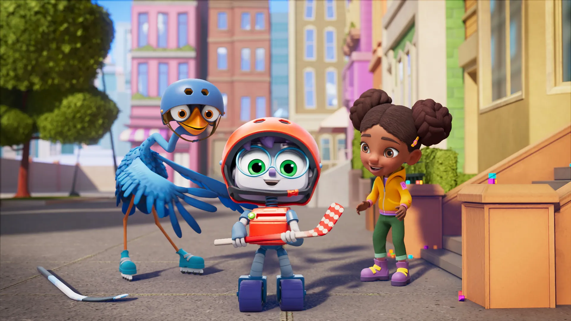 Zémeu essaie d'apprendre à Codie comment faire du hockey dans la rue et il se rend compte qu'il doit trouver les bons cubes de codage.