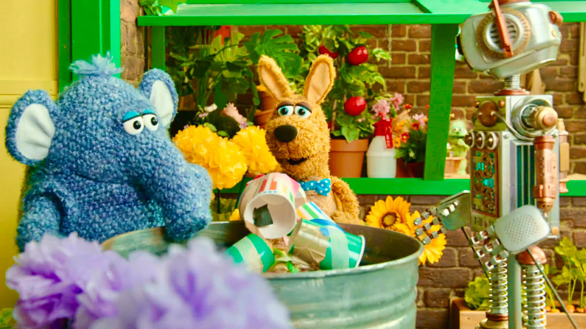 Monty le wallaby vit avec ses amis au-dessus de leur commerce de vente et de réparation d'objets.