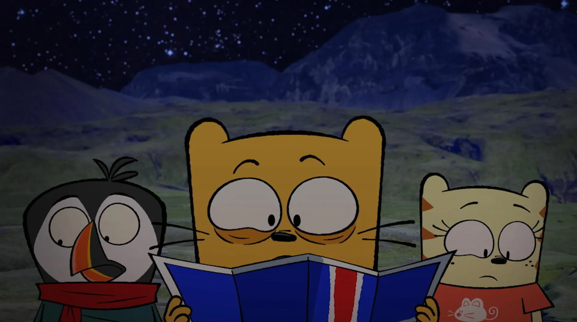 Ollie n'a pas fermé l'oeil de la nuit à cause de travaux dans la ruelle alors Moon et Stanley amènent Ollie en Islande pour faire une sieste dans le noir.