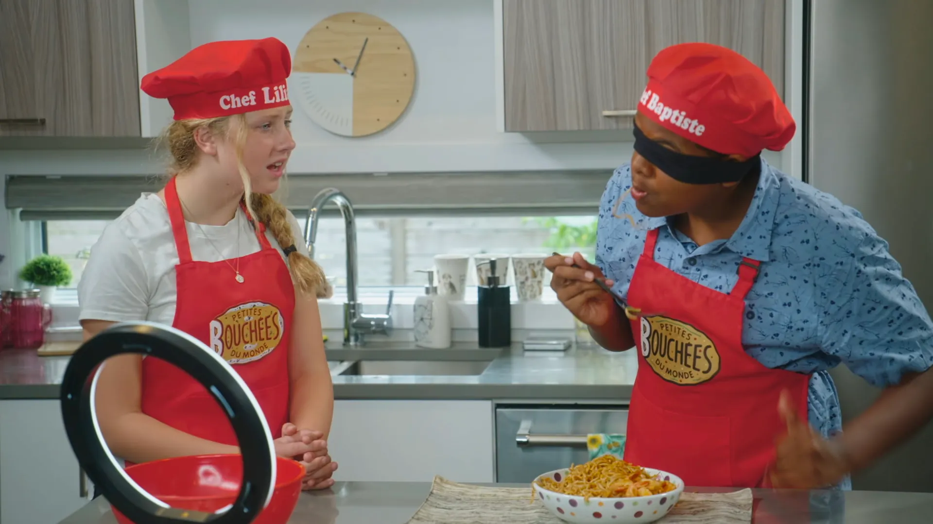 Lilianne et Baptiste, animateurs et chefs du vlog "Petites Bouchées du Monde" s'amusent à se lancer le défi cuisinomane, une course contre le temps où ils doivent déguster un plat international avec les yeux bandés et deviner les ingrédients qu'ils goûtent.