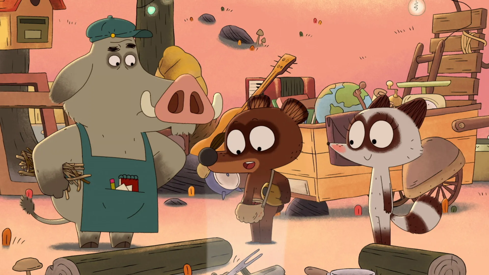 Pompon Ours saison 2, c'est l'occasion pour notre ourson d'explorer encore plus loin la forêt merveilleuse qui bourgeonne autour de sa tanière et de partir à la rencontre de ses habitants, voisins ou nouveaux venus. Lui qui au quotidien fabrique déjà de l'extra avec de l'ordinaire, se met maintenant à prendre vraiment ses rêves pour des réalités ! Toujours accompagné de la téméraire Rita, il pose sur le monde un regard franc et poétique, prend le temps de la contemplation et écoute sa petite truffe renifler les aventures pleines de joies, de miel, de tendresse et de champignons.