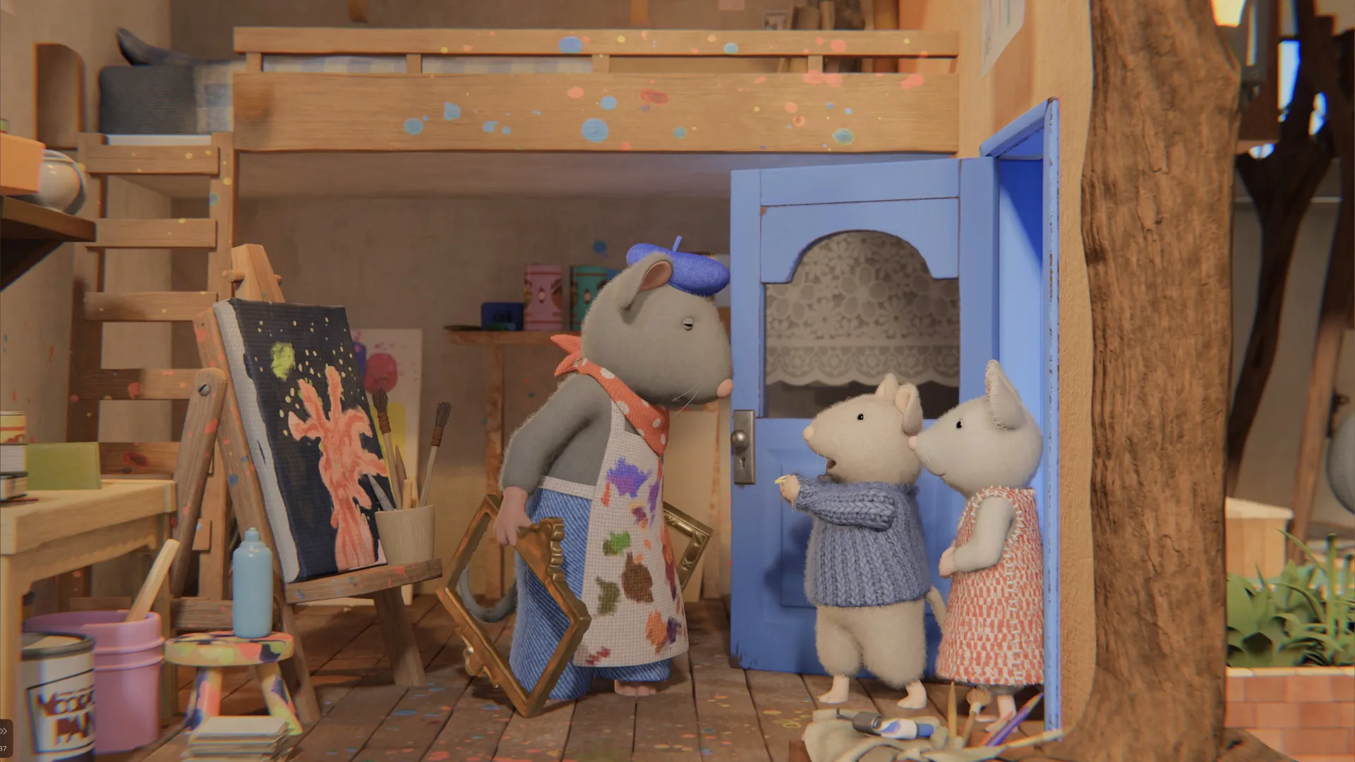 Le souriceau aide sa petite voisine à se familiariser avec sa nouvelle vie. Inséparables, ils sont vite devenus les meilleurs amis du monde.