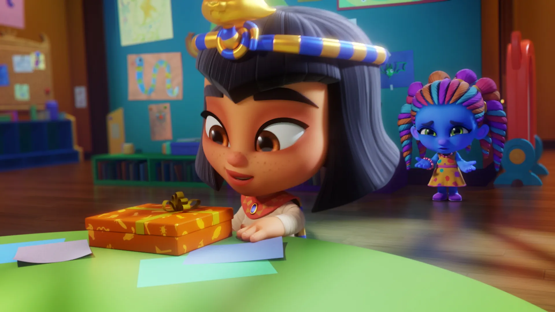 Bienvenue à la maternelle Pitchfork Pines. C'est ici que viennent les enfants des monstres les plus célèbres (et moins célèbres) du monde pour apprendre à être les meilleures personnes et les meilleurs monstres possibles. Drac, Cleo, Lobo, Katya, Zoe, Frankie, Spike et Vida sont des élèves de maternelle ayant une double identité : le jour, ils sont humains, et la nuit, ils se transforment en monstres. C'est pourquoi cette maternelle commence chaque jour à la tombée de la nuit, car lorsque le soleil se couche, ces petits élèves scintillent de magie et se réjouissent en se transformant en SUPER MINI MONSTRES ! "Quand le soleil se couche... Les monstres se réveillent !"