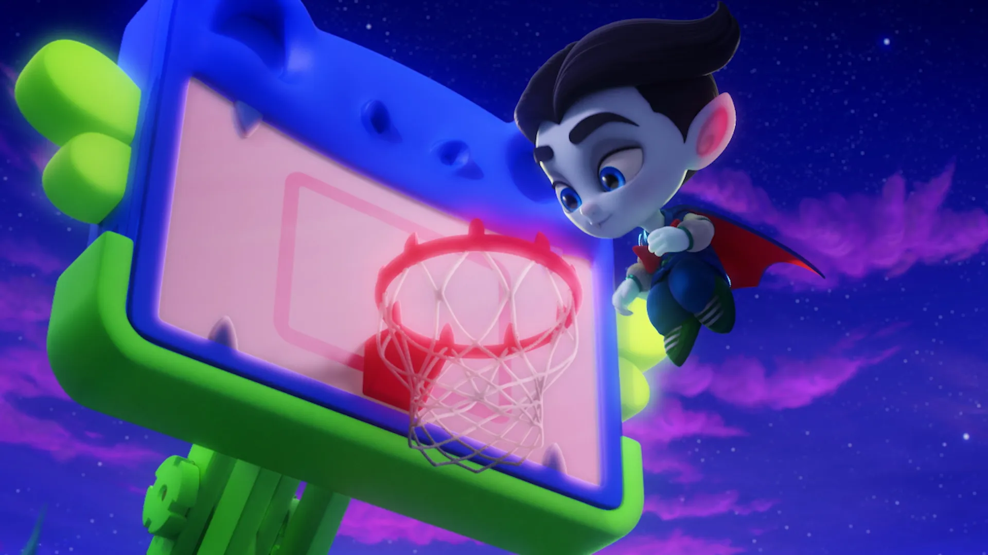 Bienvenue à la maternelle Pitchfork Pines. C'est ici que viennent les enfants des monstres les plus célèbres (et moins célèbres) du monde pour apprendre à être les meilleures personnes et les meilleurs monstres possibles. Drac, Cleo, Lobo, Katya, Zoe, Frankie, Spike et Vida sont des élèves de maternelle ayant une double identité : le jour, ils sont humains, et la nuit, ils se transforment en monstres. C'est pourquoi cette maternelle commence chaque jour à la tombée de la nuit, car lorsque le soleil se couche, ces petits élèves scintillent de magie et se réjouissent en se transformant en SUPER MINI MONSTRES ! "Quand le soleil se couche... Les monstres se réveillent !"