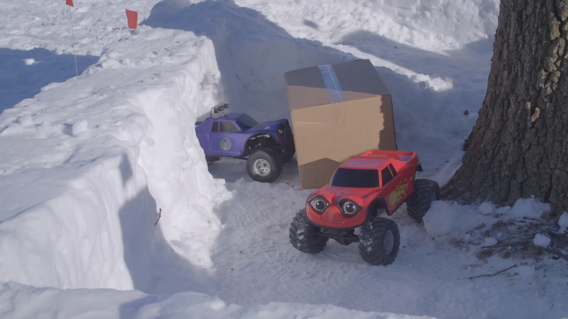 Maintenant que Zach a construit une arche dans son fort de neige, il a besoin d'une porte pour la fermer.