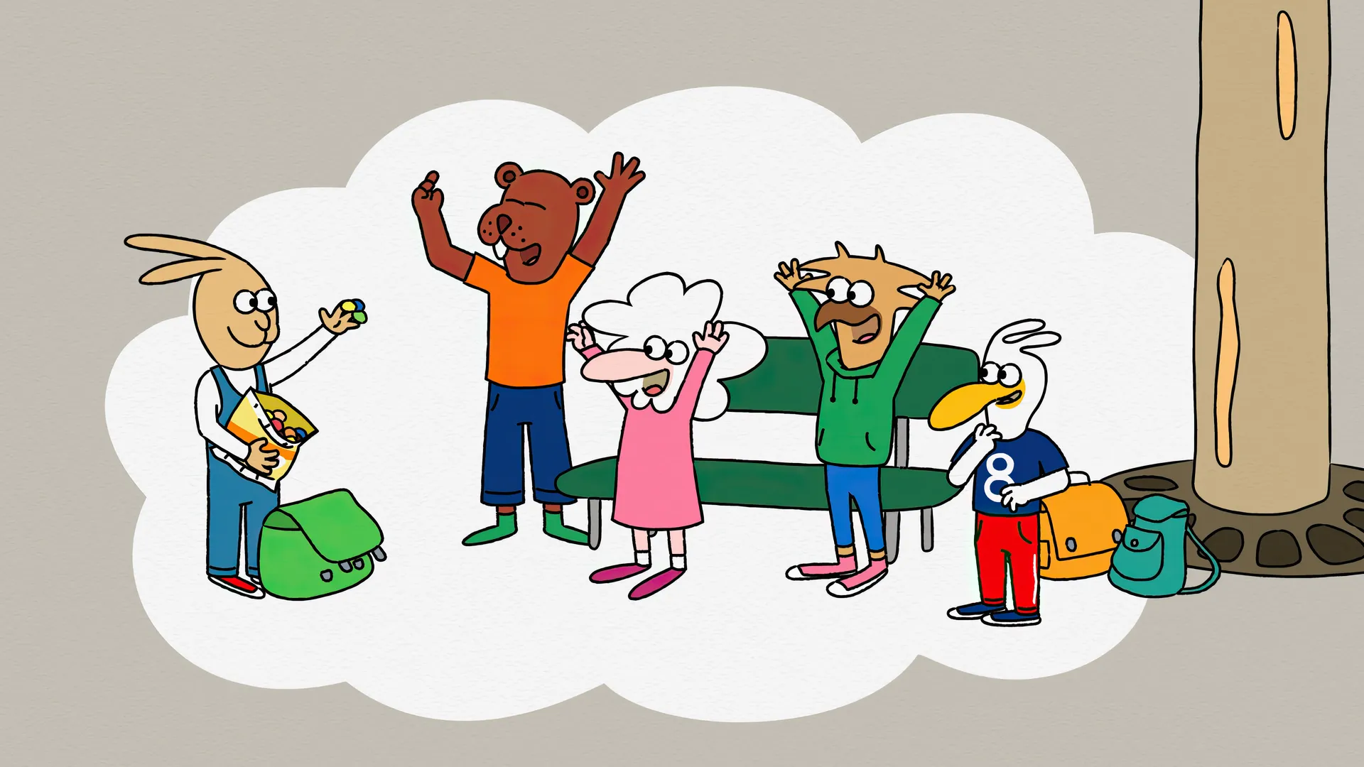 Jaja la panthère, Gégé le castor, Kiki la brebis et tous leurs copains sont des enfants. Dix enfants comme les autres.